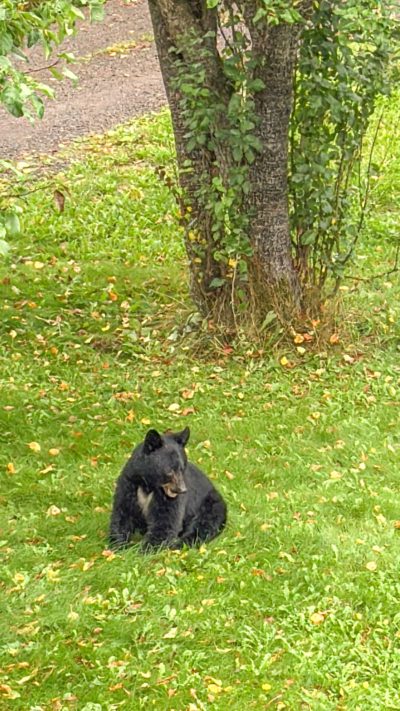 Then, in 2019 and again in 2020, a mama bear and four baby cubs were seen frequently in the Lutsen area. The family often found their way to our dumpsters. Luckily, they were always able to get back out without assistance! In 2020 we built an electric fence around our dumpsters to help keep the thrifty bears away. However, reports of bears breaking into dumpsters and even homes are reported every year in the area. In 2024, a baby and mama black bear were frequently spotted in the areas of the burned remains of Lutsen Resort.