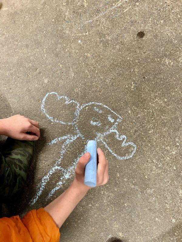 Kids drawing moose on the floor of Joy & Co. Moose Madness 2021