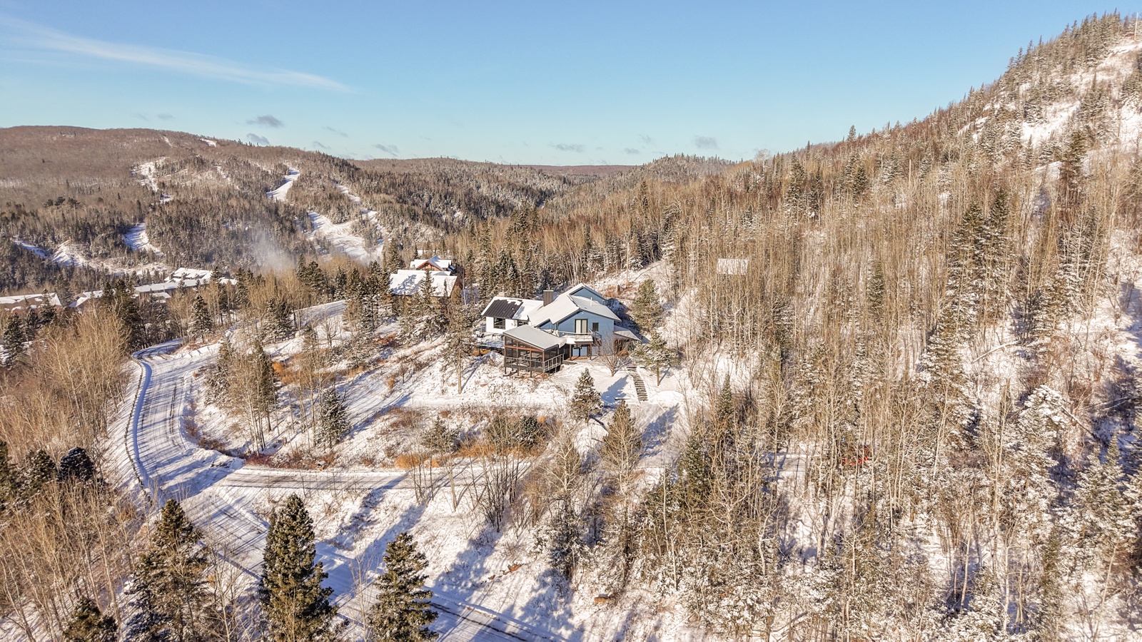 Blue House is ski-in/ski-out to Lutsen Mountains for advanced skiers only. Other skiers will want to walk the short distance to Bridge Run and access the ski hill from down the road.