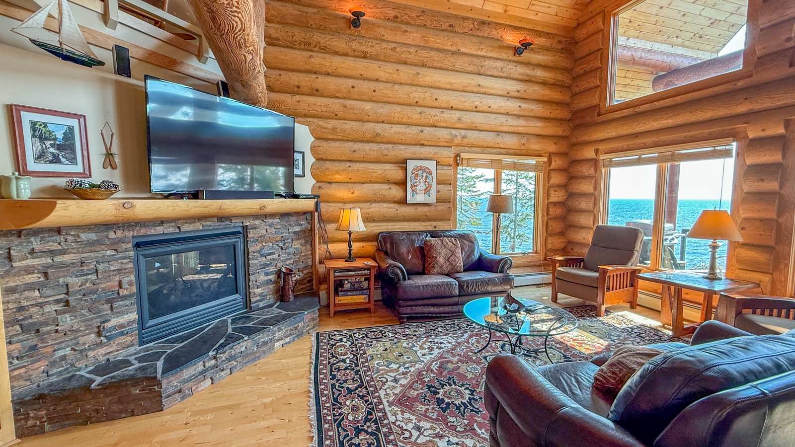 From the moment you walk into the large open living space, your eyes will be drawn to the sweeping, unobstructed Lake Superior views from the floor to ceiling windows in Chaika (formerly known as Temperance Landing 24) in Schroeder, Minnesota. This luxurious log home is spacious and inviting and just waiting to be called your North Shore home away from home.