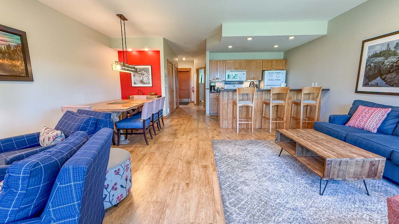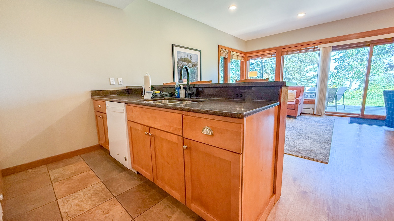 Cliffhouse 677 features three bedrooms and three bathrooms located over two spacious levels. On the main level, you will find an open-layout living space with a lgalley-style kitchen that is open to the living room. Enjoy a home-cooked meal in the dining room area where there is seating for seven with additional seating at the kitchen bar. Relax in the home's living room and enjoy large Lake Superior-facing windows. Step out on the lake-facing deck where you can enjoy cooking a summertime BBQ on the shared community gas grill. A bedroom with two queen beds and a full bathroom complete the main level.