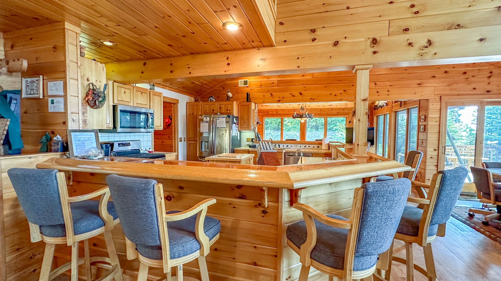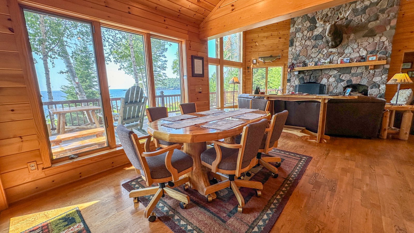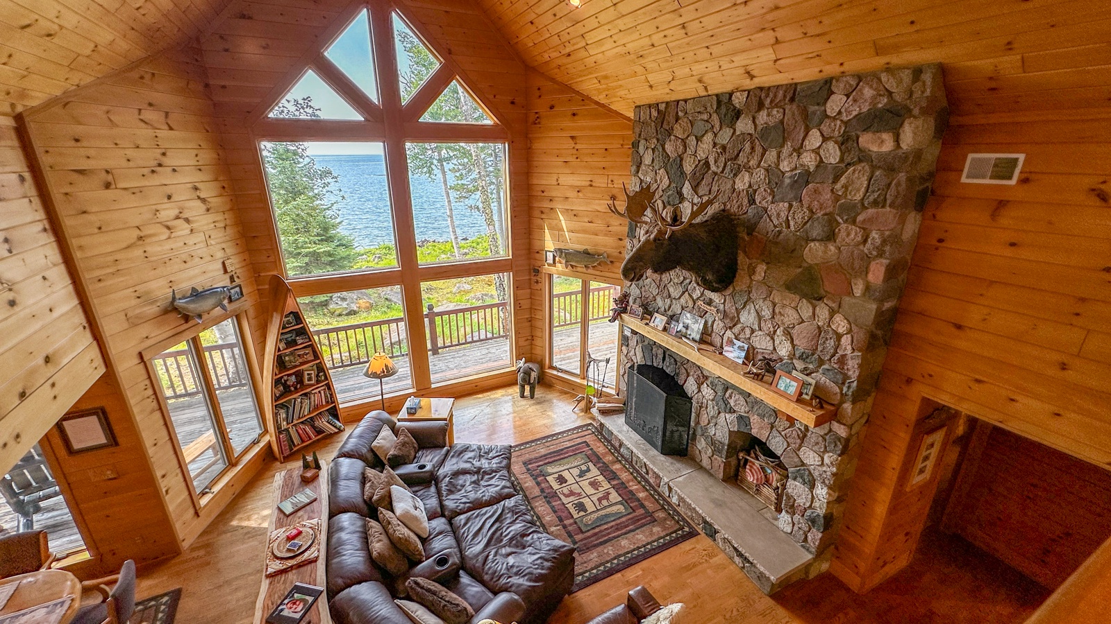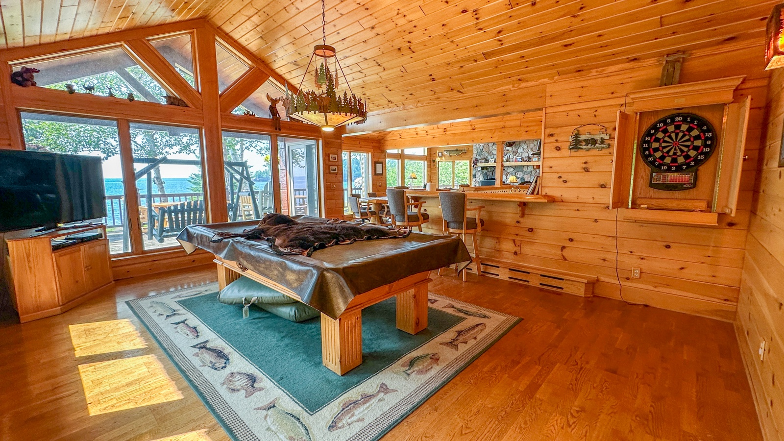 Enchanted Shores located in Hovland, Minnesota is an immaculate, spacious home that has everything you dream of in a Lake Superior vacation home. Enjoy the open floor plan with vaulted ceilings, large picture windows, a stone wood-burning fireplace complete with Maynard the Philosopher, a large wrap-around kitchen counter with bar stools, a game room with a pool table, and much more.