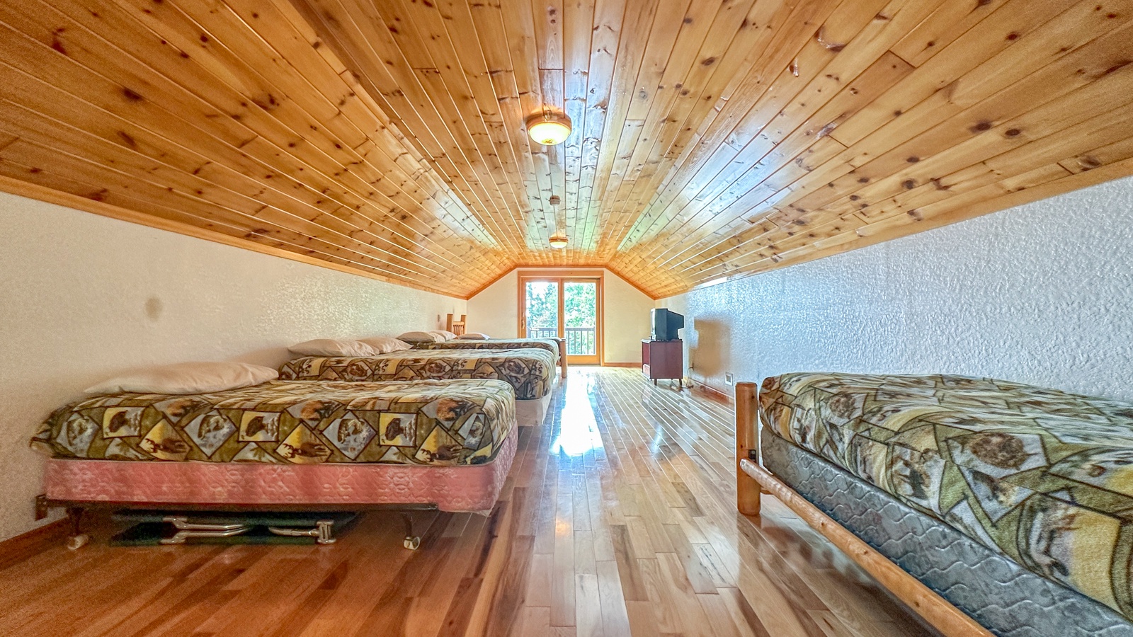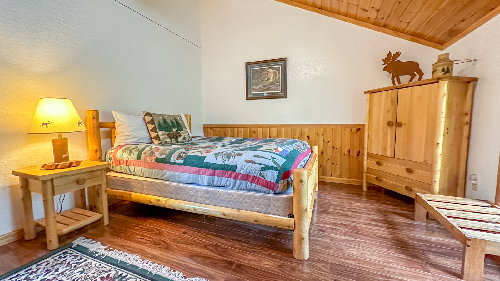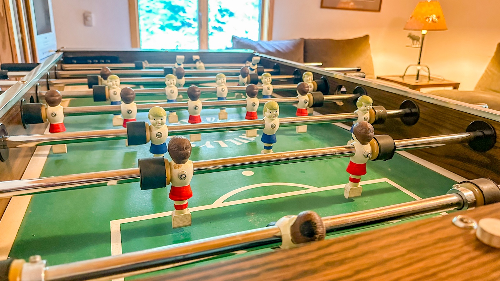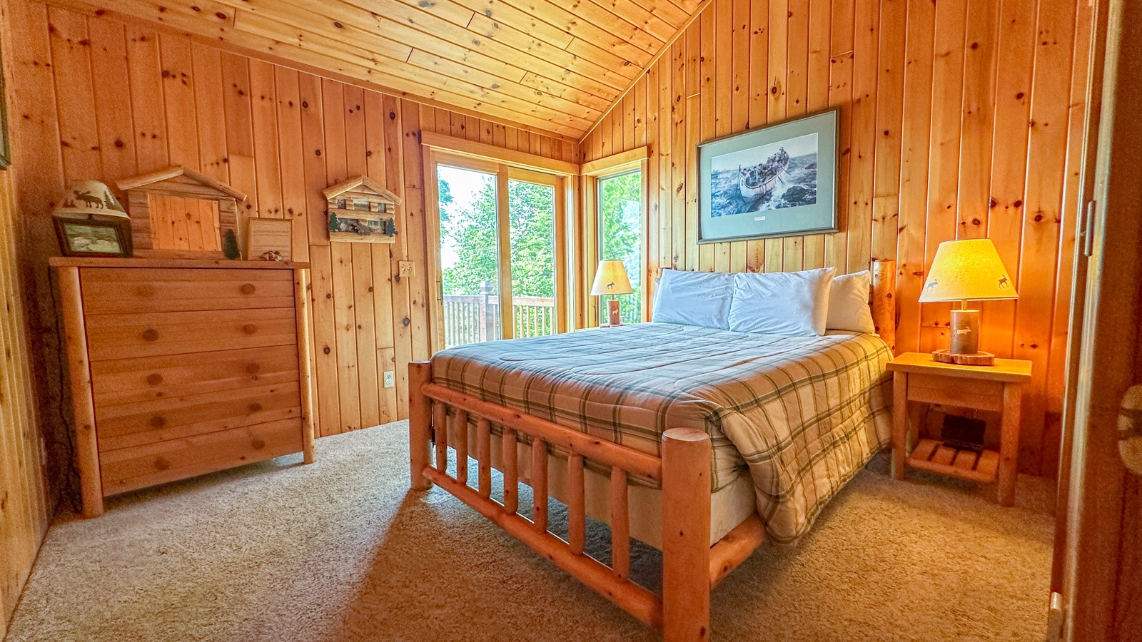Melt the stress away in the cedar sauna and pamper yourself in the jetted tub complete with a towel warmer. Gather with family and friends for a game of darts or stroll out to the bunkhouse for a game of foosball or ping pong. The main home offers 2 bedrooms, a sleeping loft, and 2 full bathrooms. There is also a bunkhouse with two sleeping lofts and another bedroom that also features a large rec room - perfect for the kids! There is no bathroom in the bunkhouse, but there is a nearby outhouse and guests can always go to the main house just 75 feet away.