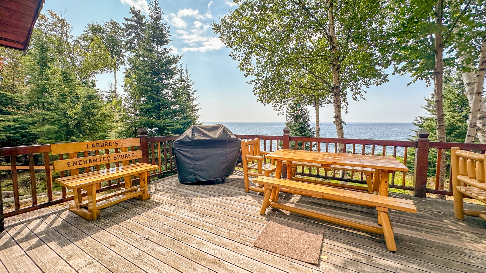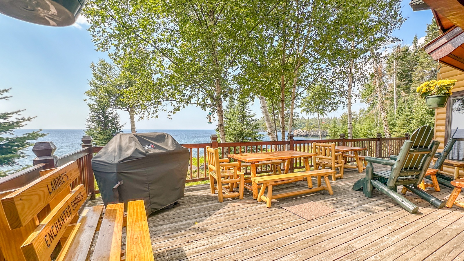 Enchanted Shores sits on a long stretch of private Lake Superior shoreline with moderate access from the home. Watch the sunrise, skip rocks, or find a comfy rock and read a book and truly enjoy the majesty that is the Great Lake. On a warm summer evening start a fire in the firepit and roast marshmallows while sharing tales of your North Shore adventures.