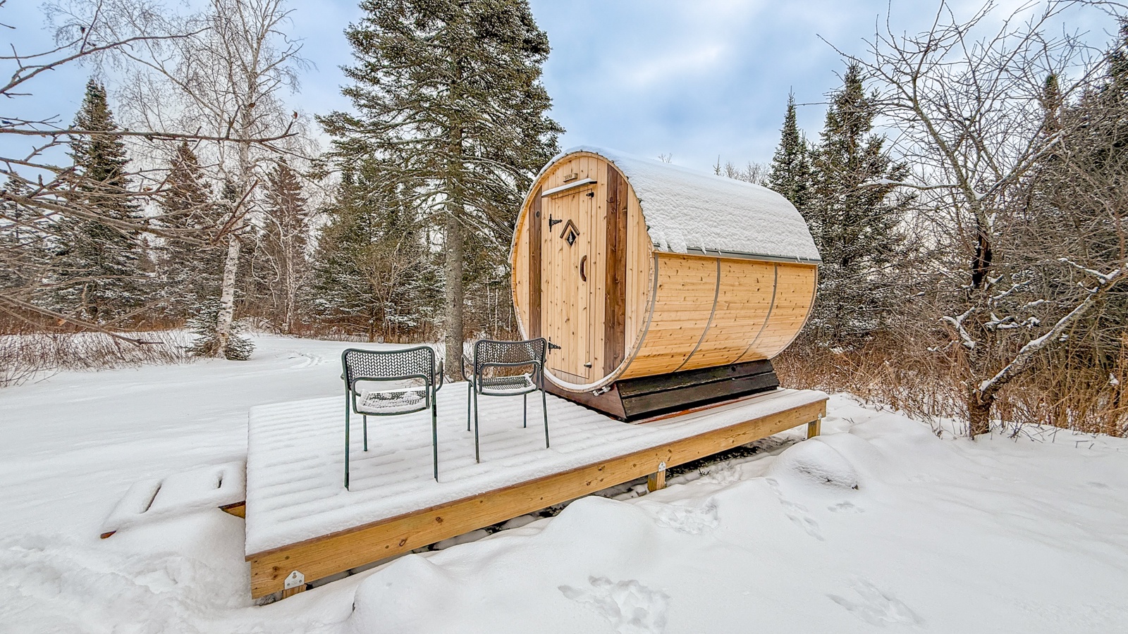 Outside you will find a private retreat with a patio, BBQ grill, fire pit, and a barrel sauna! The sauna is perfect for relaxing after a long day of hiking, biking, or just exploring the North Shore.