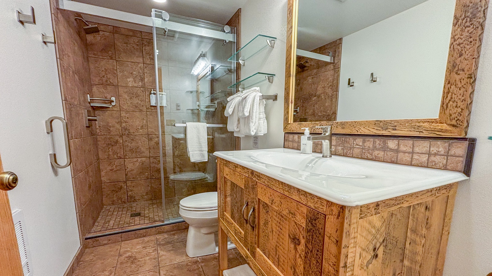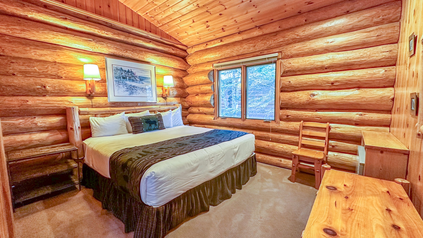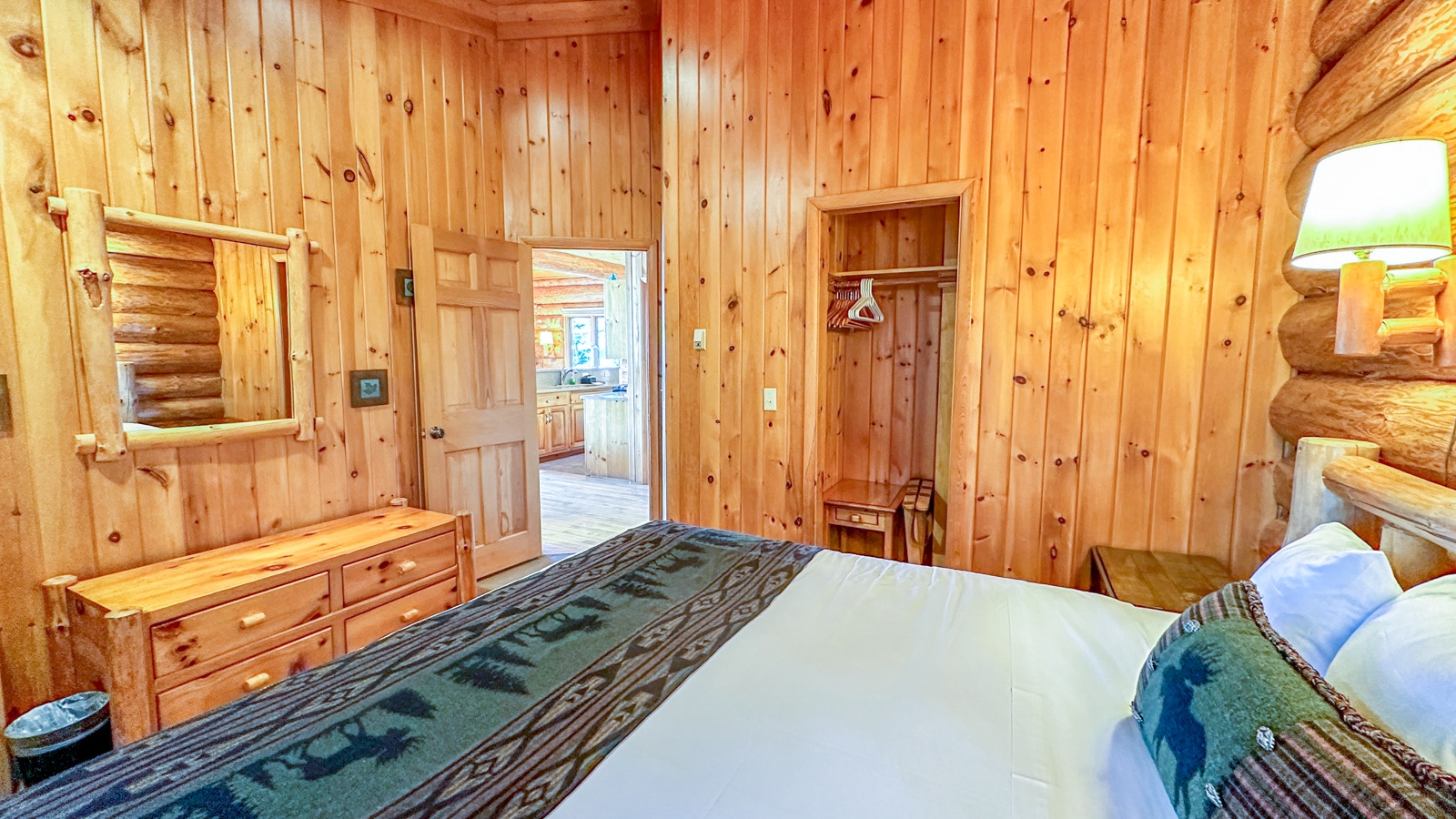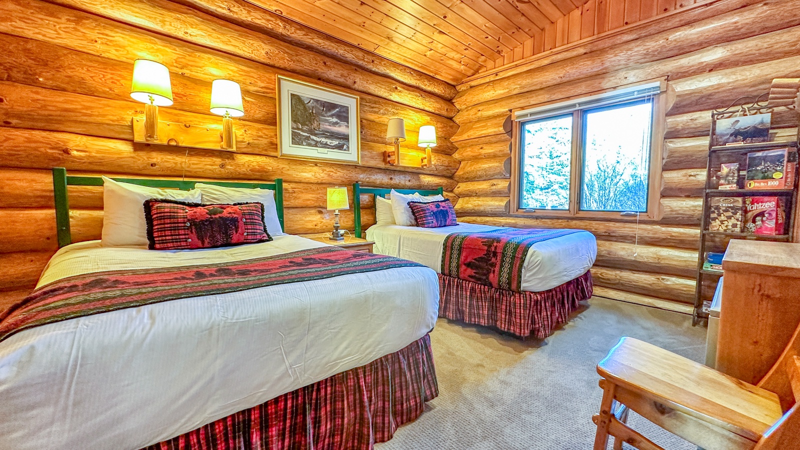 The cabin features a king guestroom as well as a double guestroom with two full beds and either a futon or sleeper sofa in the living room for additional guests.