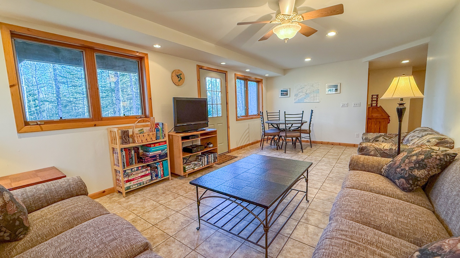 The Cathedral of the Pines summer camp is next door and you can often hear the sounds of kids laughing and playing, but still have plenty of peace and privacy. The home also boasts a two-person jetted tub in the master bedroom and a sauna in the lower level living room area.