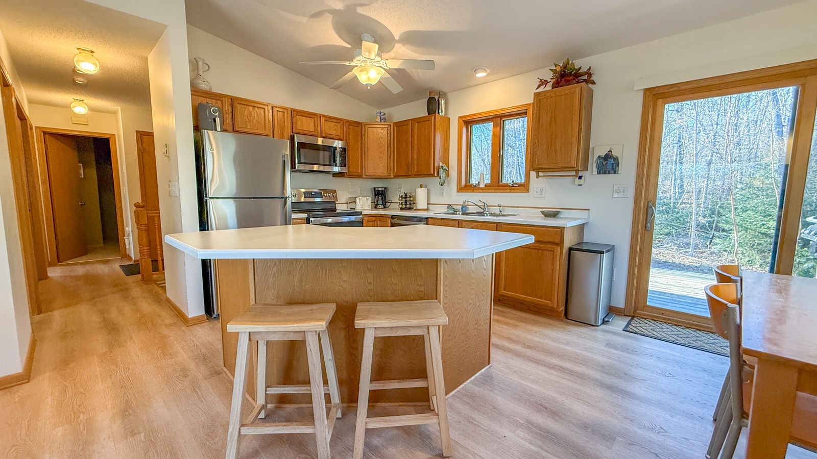 Maple Haven is a three-bedroom, two-bathroom, two-level home, but offers so much more than just a place to stay. Located on the very popular Caribou Lake, it's an ideal location for boating, fishing, and swimming, In addition, you have a large grassy yard and easy access to the larger lake.